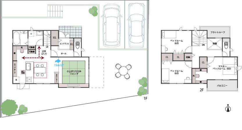 駐車場2台で庭付きの新築一戸建てがリーズナブルな価格で建てられます!